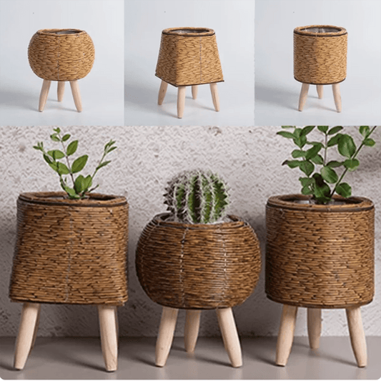 Reben-Geflecht Blumenrahmen: Dreieck-Halterung & Pflanztopf für kreative Desktop-Deko