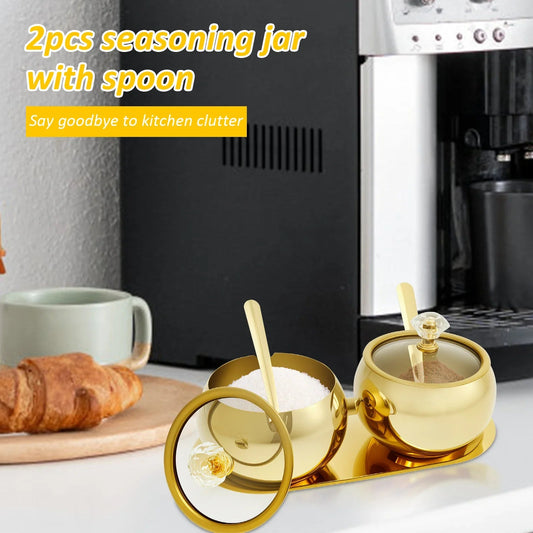 Gewürzbehälter aus Edelstahl: Multifunktionaler Topf mit Glasdeckel & Löffel