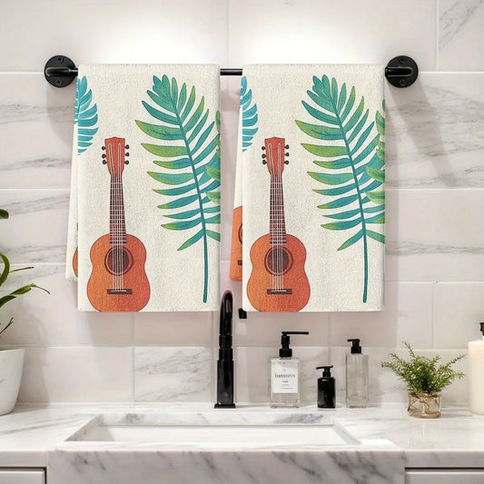 2er-Set Küchentücher: Saugfähig & dekorativ mit Gitarren- & Palmenblatt-Motiv
