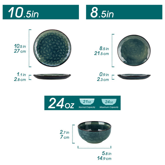 Grünes Keramik-Set: 12/24-teiliges Geschirr aus Steinzeug für 4 oder 8 Personen