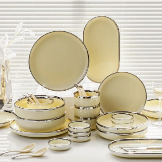 Keramikteller mit Silberrand: Stilvolles Geschirr-Set für Steak & Co.