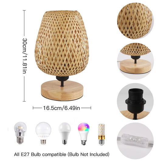 Wabi-Sabi Tischlampe aus Holz mit E27-Fassung