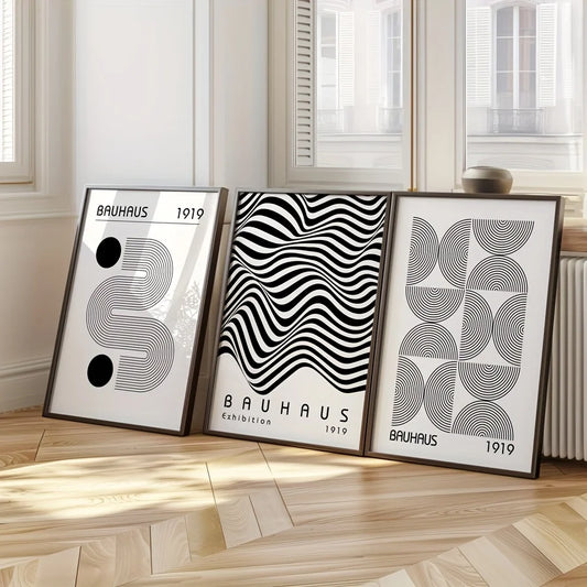 3er Set Bauhaus-Poster in Schwarz-Weiß
