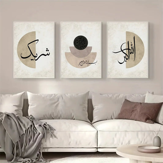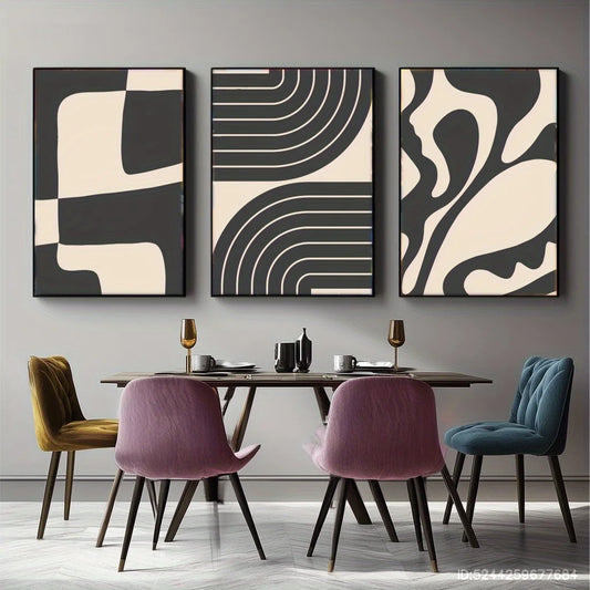 3er Set Minimalistische Geometrische Leinwandkunst mit Holzrahmen