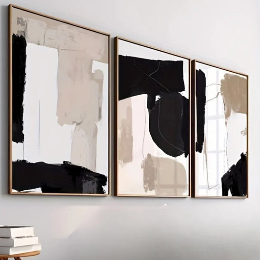 3er Set Abstrakte Wandkunst in Schwarz-Beige
