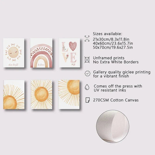 Boho Rainbow & Sunshine Poster (3er-Set): Wandkunst für Jungen- & Mädchenzimmer