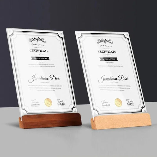 Acryl-Fotorahmen mit Holzsockel: Transparenter Display-Ständer für A4, A5 & A6