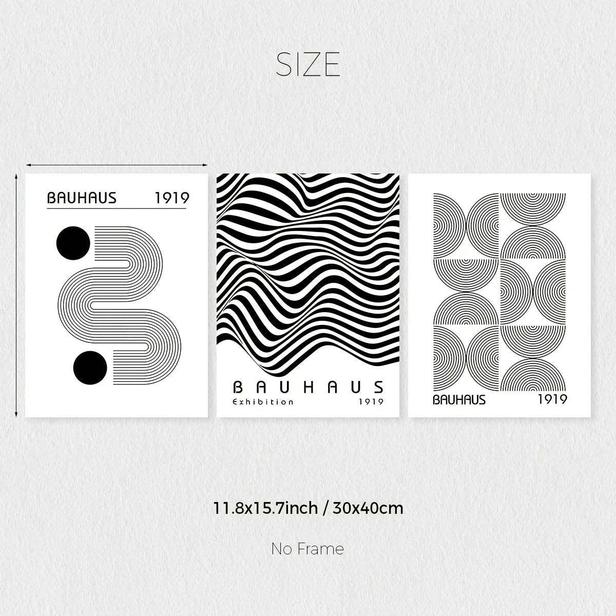 3er Set Bauhaus-Poster in Schwarz-Weiß