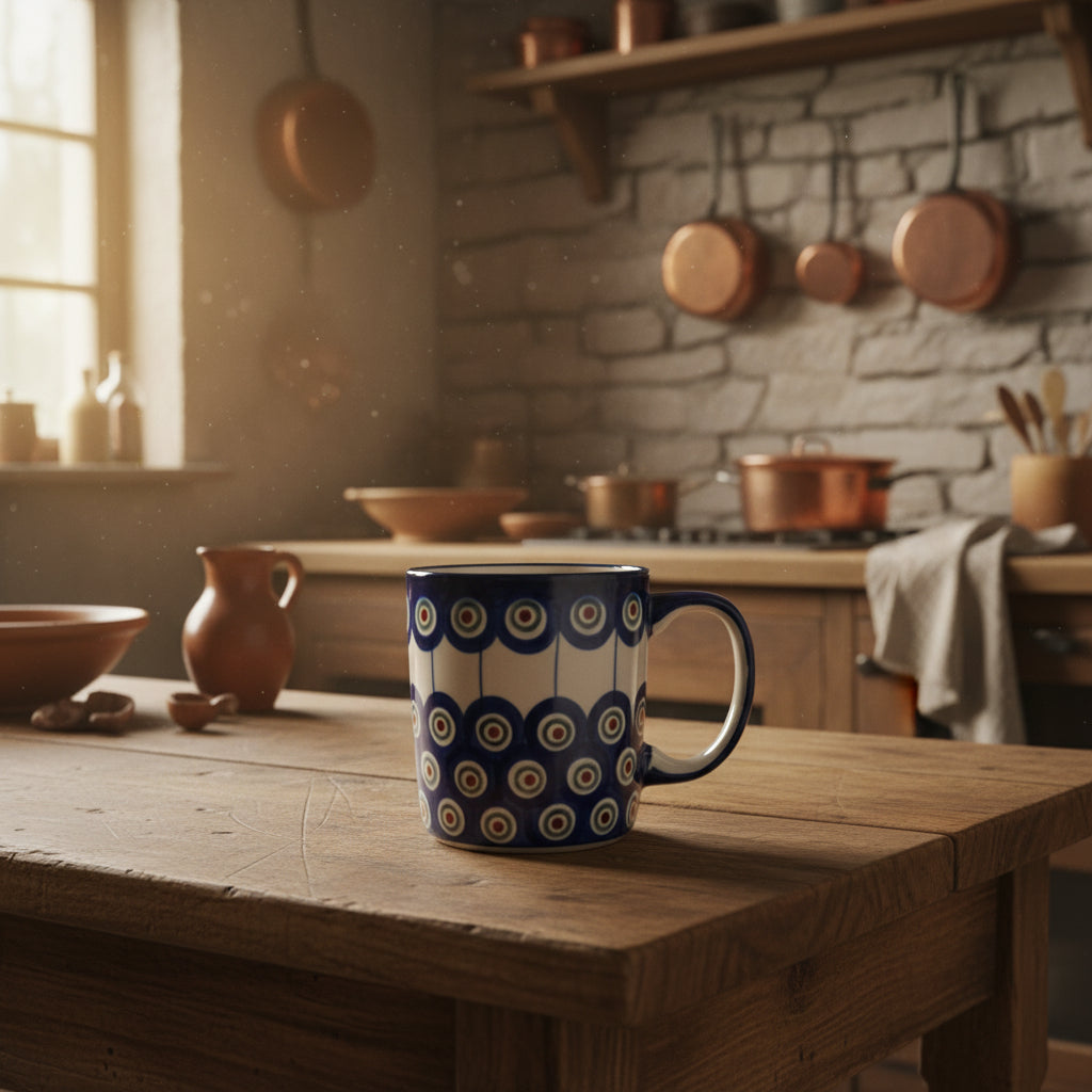 Als echtes Bunzlauer Unikat besticht sie durch ein besonders aufwendiges, handgemaltes Dekor. Die satten Farben und feinen Muster machen jede Tasse zu einem kleinen Kunstwerk.