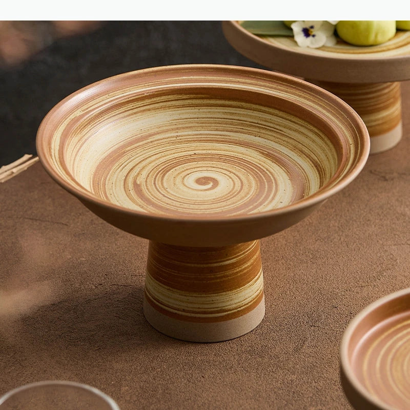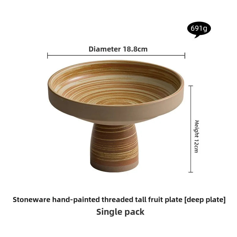 Verleihen Sie Ihrem Tisch einen Hauch von rustikaler Eleganz und künstlerischer Raffinesse! Dieser exquisite Teller (oder Schale) ist aus grober Keramik (Stoneware) gefertigt und besticht durch seinen Retro-Charme und die handwerkliche Anmutung. Das Besondere ist das Design als High Footed-Teller (Teller auf hohem Fuß), das Ihre Speisen anhebt und sie wie ein Kunstwerk präsentiert. Er ist das perfekte Geschirr für ein anspruchsvolles Restaurant oder den gehobenen Hausgebrauch.