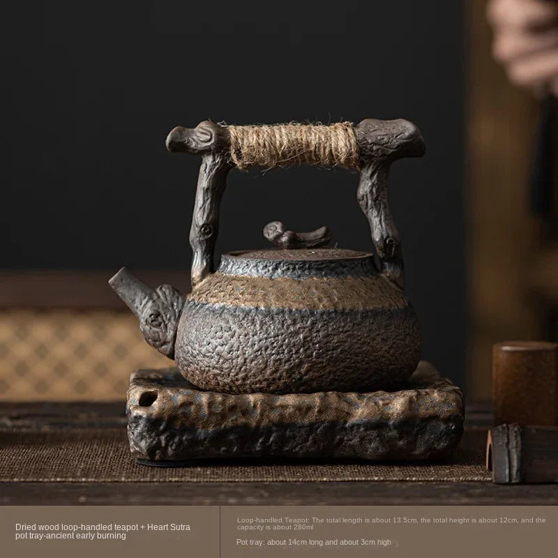 Einzigartiger Henkel: Der Schleifen-Griff ist mit Hanfseil und getrocknetem Holz umwickelt. Dies schützt Ihre Hände vor der Hitze und verleiht der Teekanne eine warme, natürliche Haptik, die perfekt zum rustikalen Stil passt.