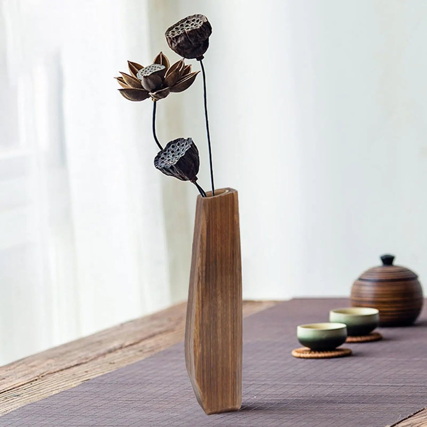 Vielseitig nutzbar: Ob als imposante Holzbodenvase im Eingangsbereich, als charmante Tischdekoration auf der Terrasse oder als stilvolles Element im Schlafzimmer und Badezimmer – diese Vasen passen sich jeder Umgebung an.