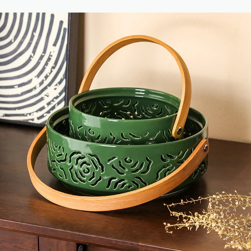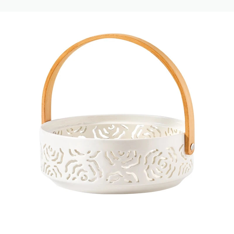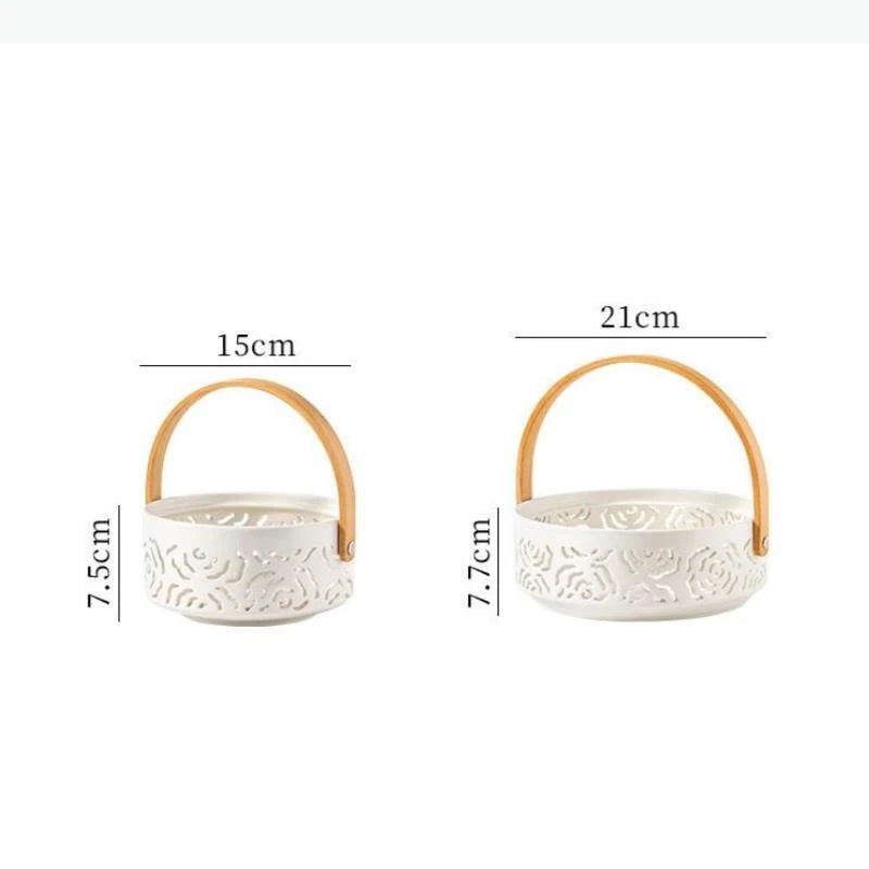 Keramik Korb-Tablett mit Griff – Hohle Obst- & Snackschale