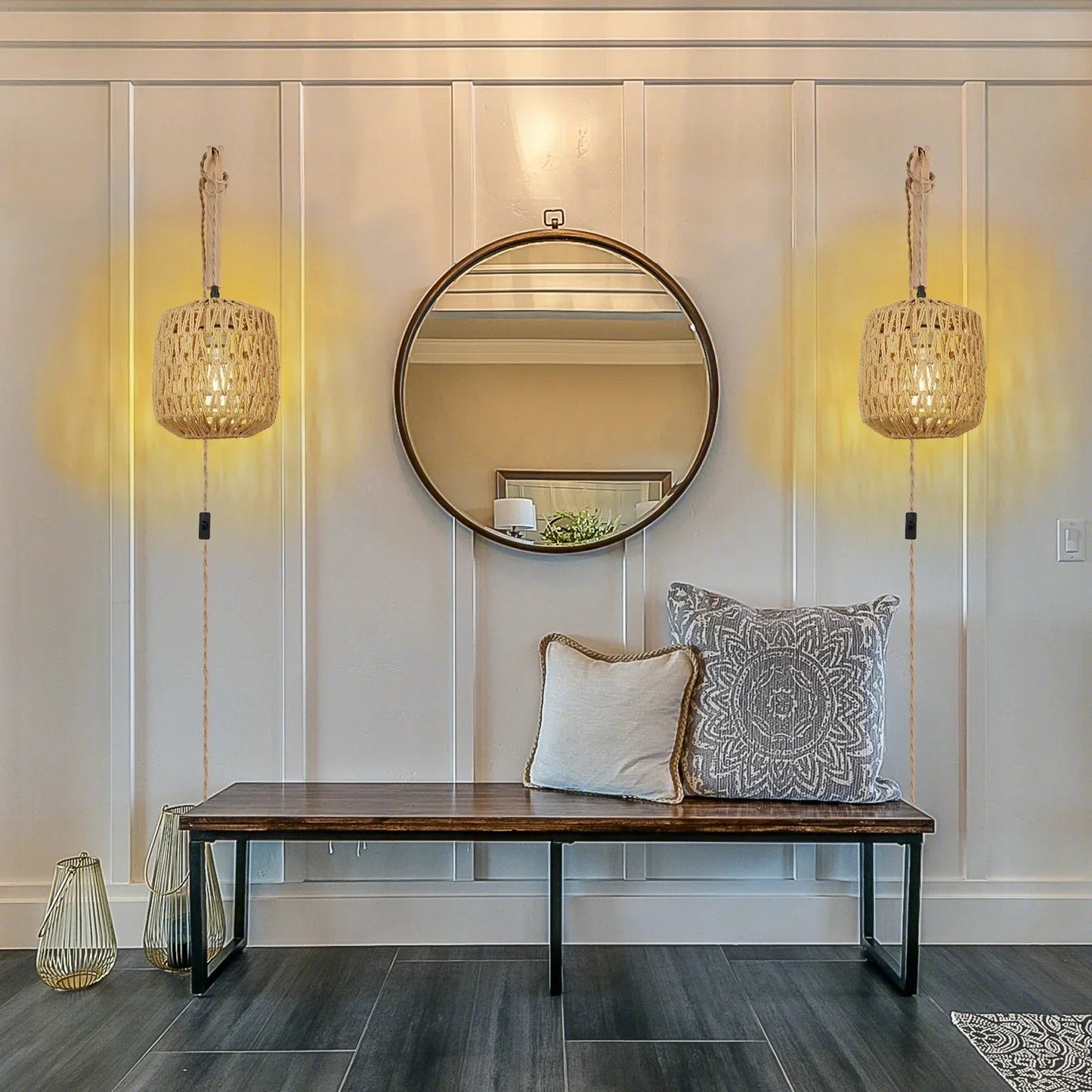 Verleih deinem Zuhause einen Hauch von rustikalem Charme mit unserer LED-Rattan-Wandleuchte! Diese stilvolle Lampe ist die perfekte Ergänzung für deine Einrichtung. Mit ihrem eleganten, handgeflochtenen Design aus Hanfseil und der standardmäßigen E27-Fassung sorgt sie für eine warme, gemütliche Atmosphäre und ist die ideale Beleuchtung für dein Schlafzimmer und Wohnzimmer.