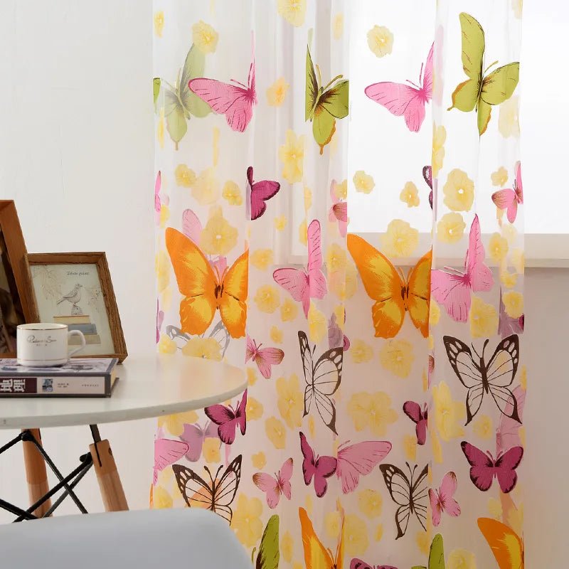 Verleih deinem Wohnzimmer einen Hauch von Leichtigkeit mit unseren Schmetterling-Tüll-Vorhängen! Diese transparenten Vorhänge mit zartem Schmetterlingsdruck sind die perfekte Ergänzung für deine Einrichtung. Mit ihrem eleganten Design und dem weichen Tüllstoff sorgen sie für eine helle, offene Atmosphäre und sind die ideale Dekoration für deine Fenster.